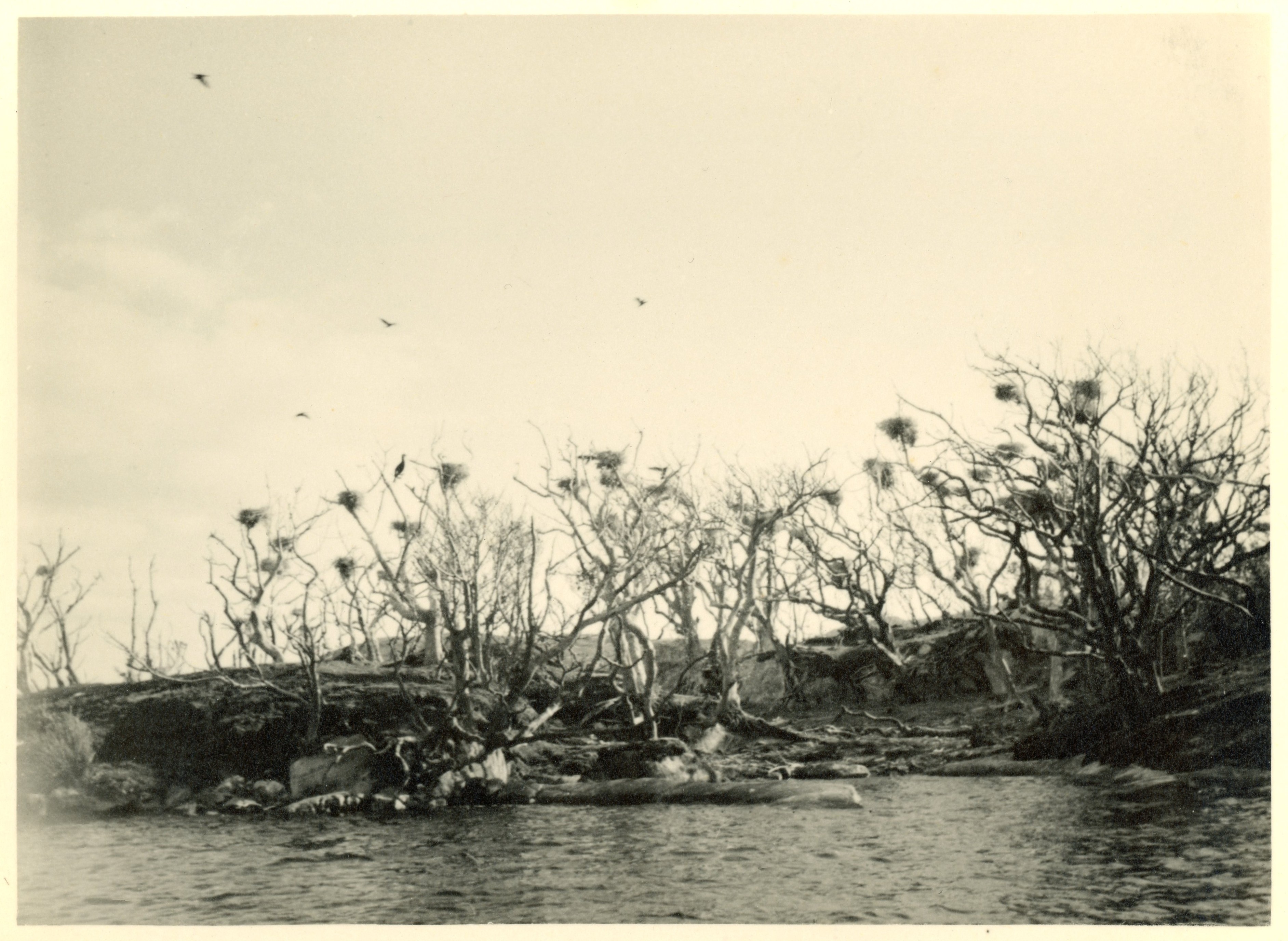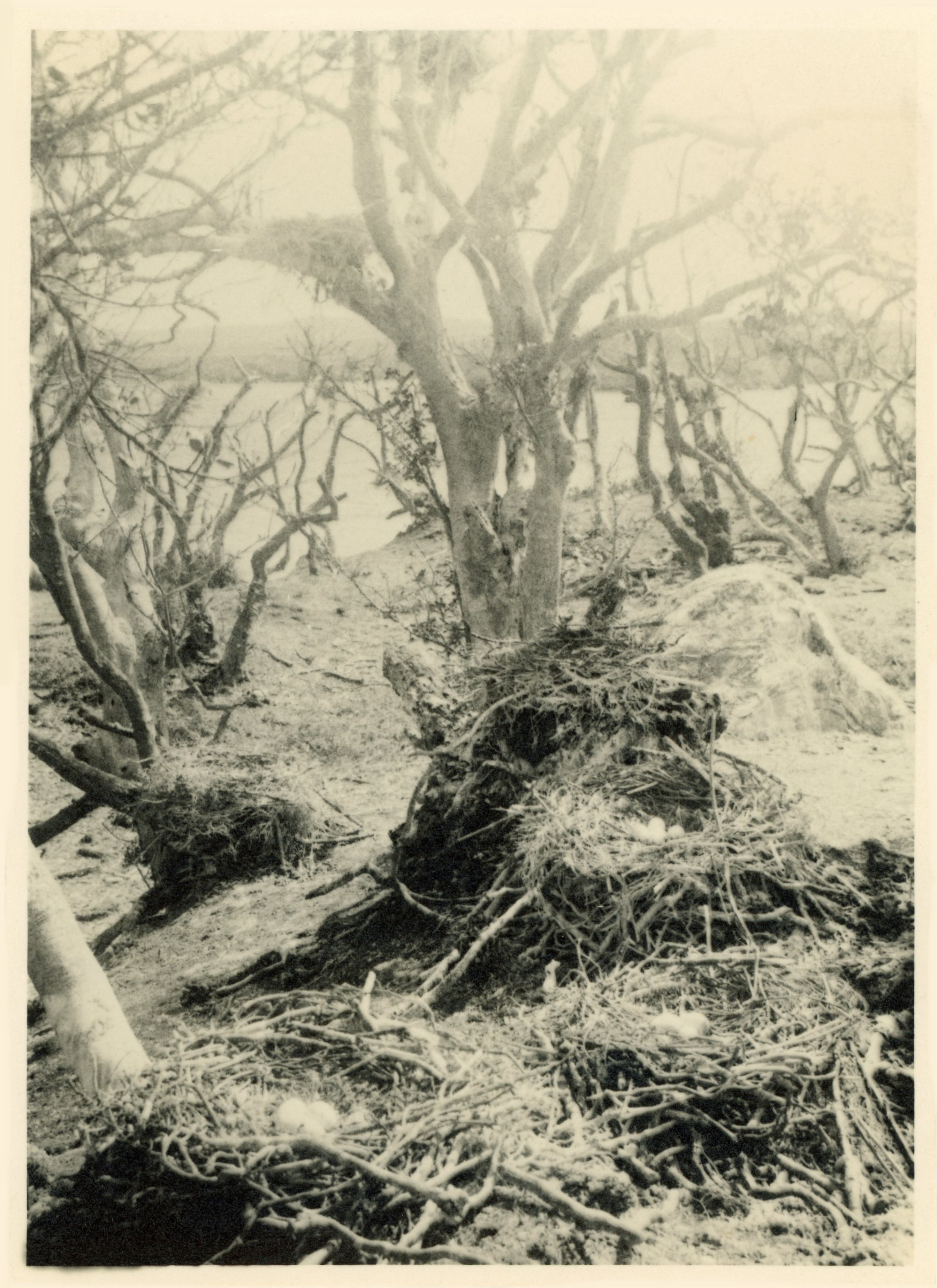 Colony of Cormorants nests. Coilíneacht neadacha na mbroigheall Colony of Cormorants nests.