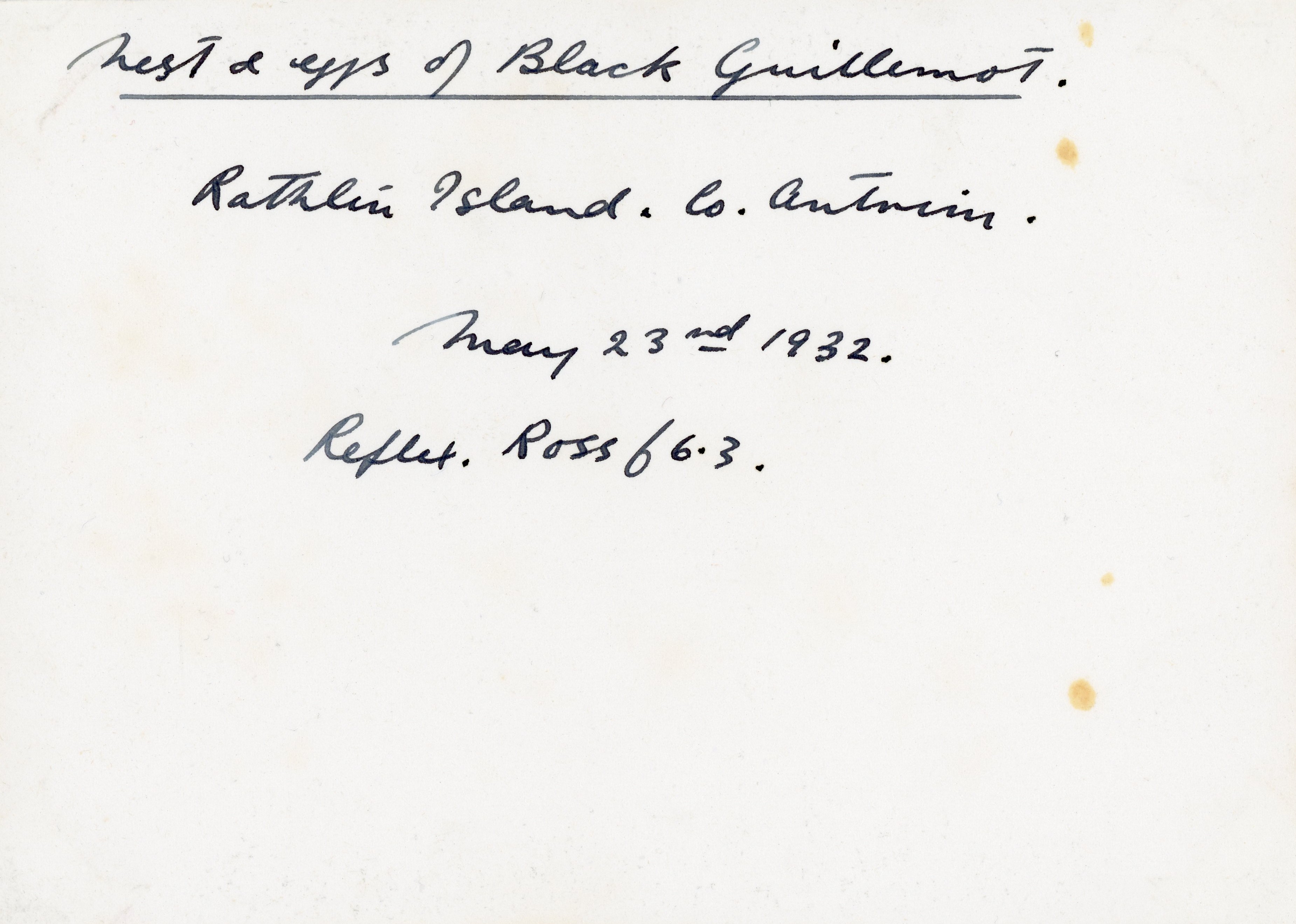 Nest & eggs of Black Guillemot Nead agus uibheacha forach dhuibh Nest & eggs of Black Guillemot